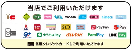 A.現金、クレジットカード、下記電子決済が使用できます。